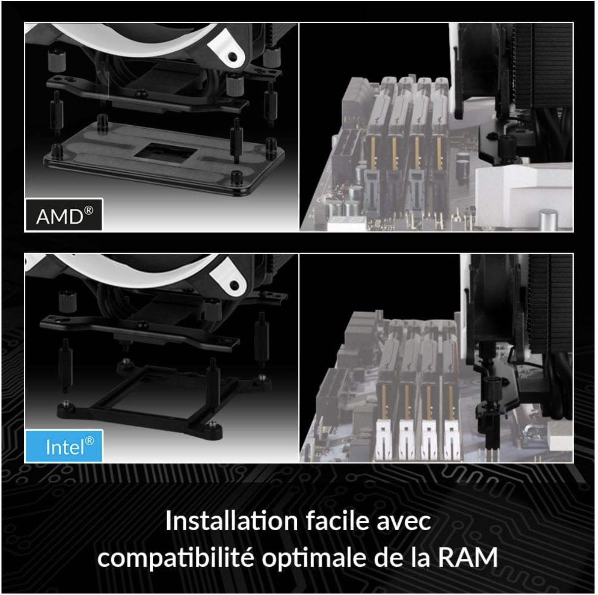 Ce ventirad est l’un des meilleurs rapports qualité/prix du marché pour garder votre processeur au frais sans bruit excessif. Idéal pour les configurations puissantes nécessitant un refroidissement fiable et stylé.