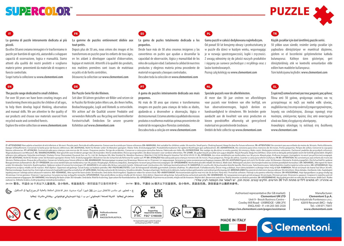 Grâce à sa forme spéciale et ses couleurs éclatantes, ce puzzle stimule la concentration, la logique et la motricité fine tout en offrant un moment de détente ludique. Les pièces sont fabriquées avec un carton épais et résistant, garantissant un assemblage précis et durable.